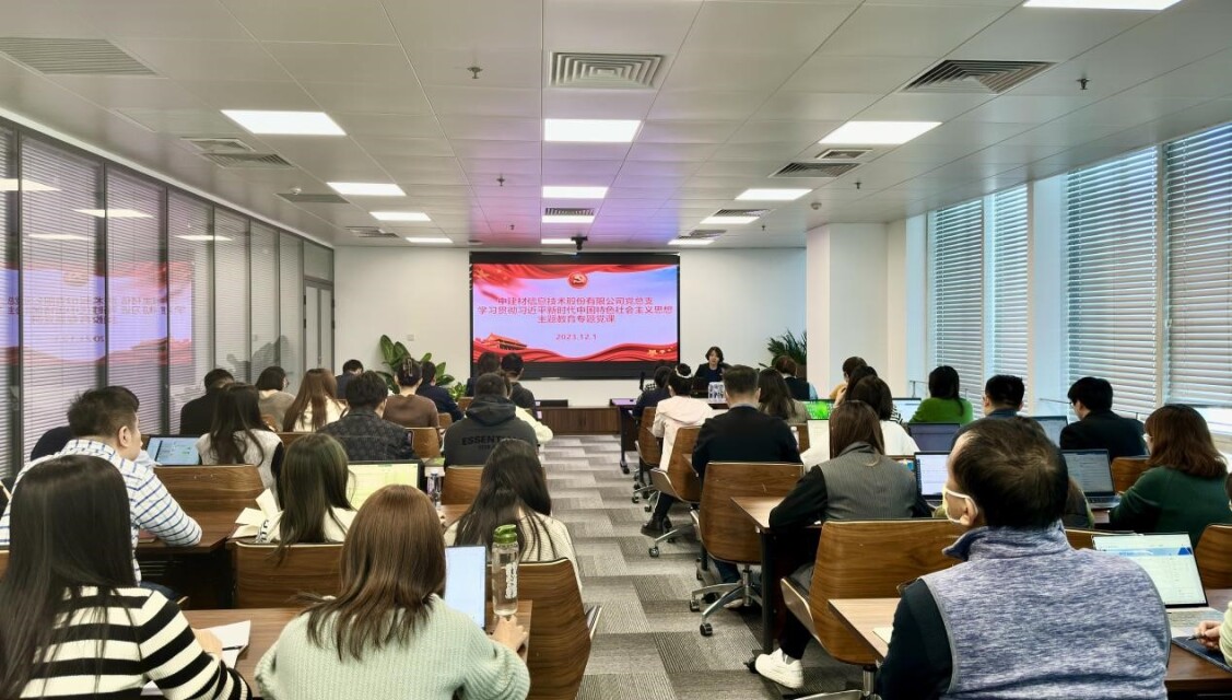 12月1日上午,中建材信息技術股份有限公司黨總支書記、副總經理賈鶴晉以《感悟黨的百年輝煌史中的力量》為題,為公司全體黨員講授了一堂生動的主題教育專題黨課。中建材聯合投資有限公司黨總支委員、總經理助理、綜合管理部總經理何衛紅同志到會指導。