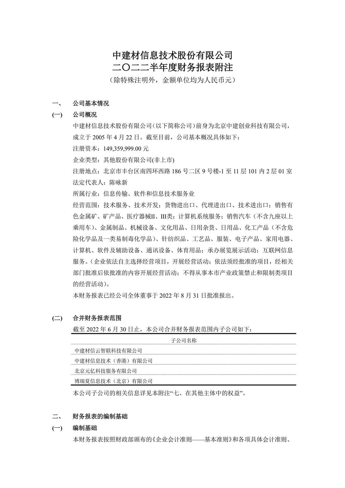中建信息2022年半年度報告