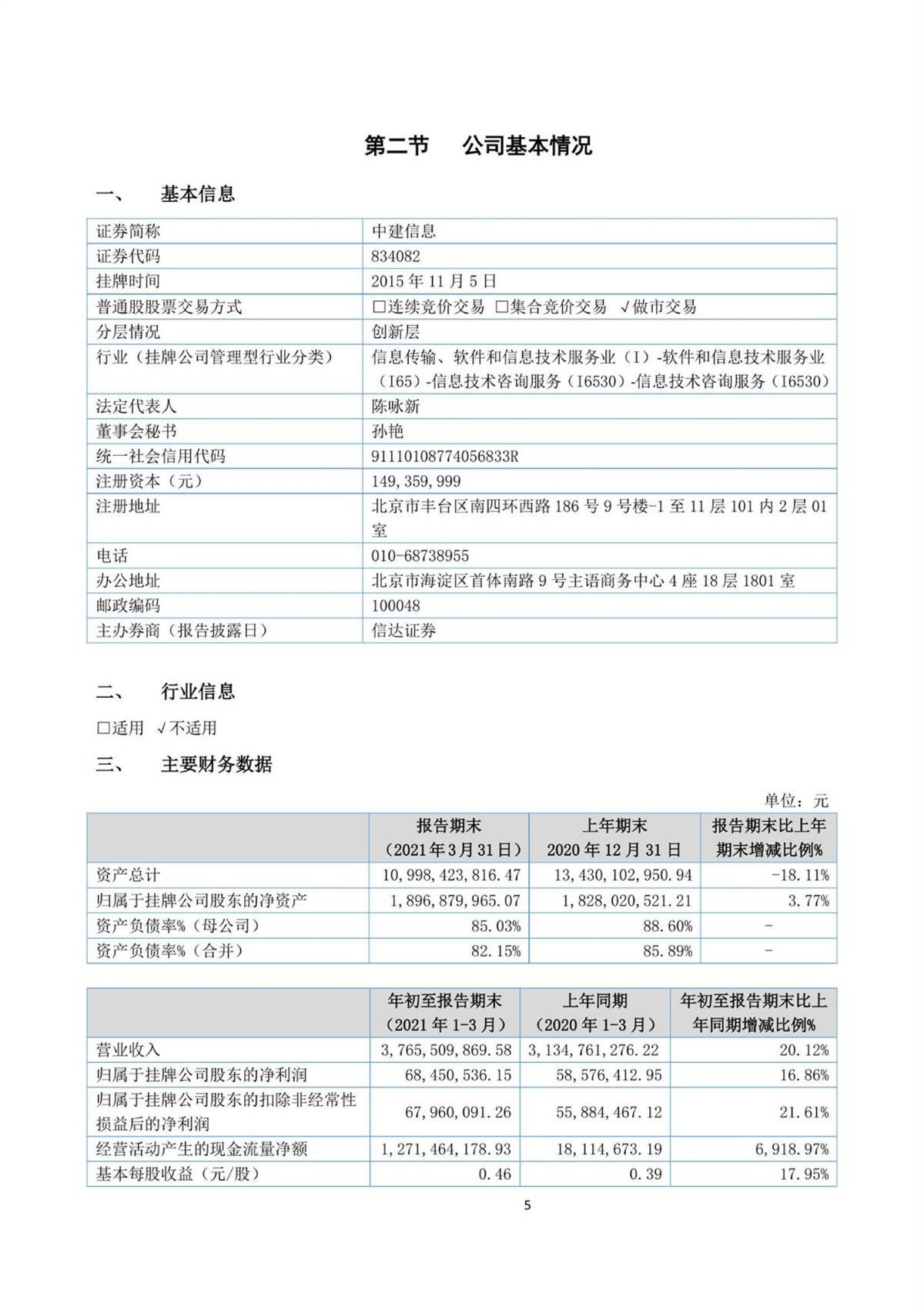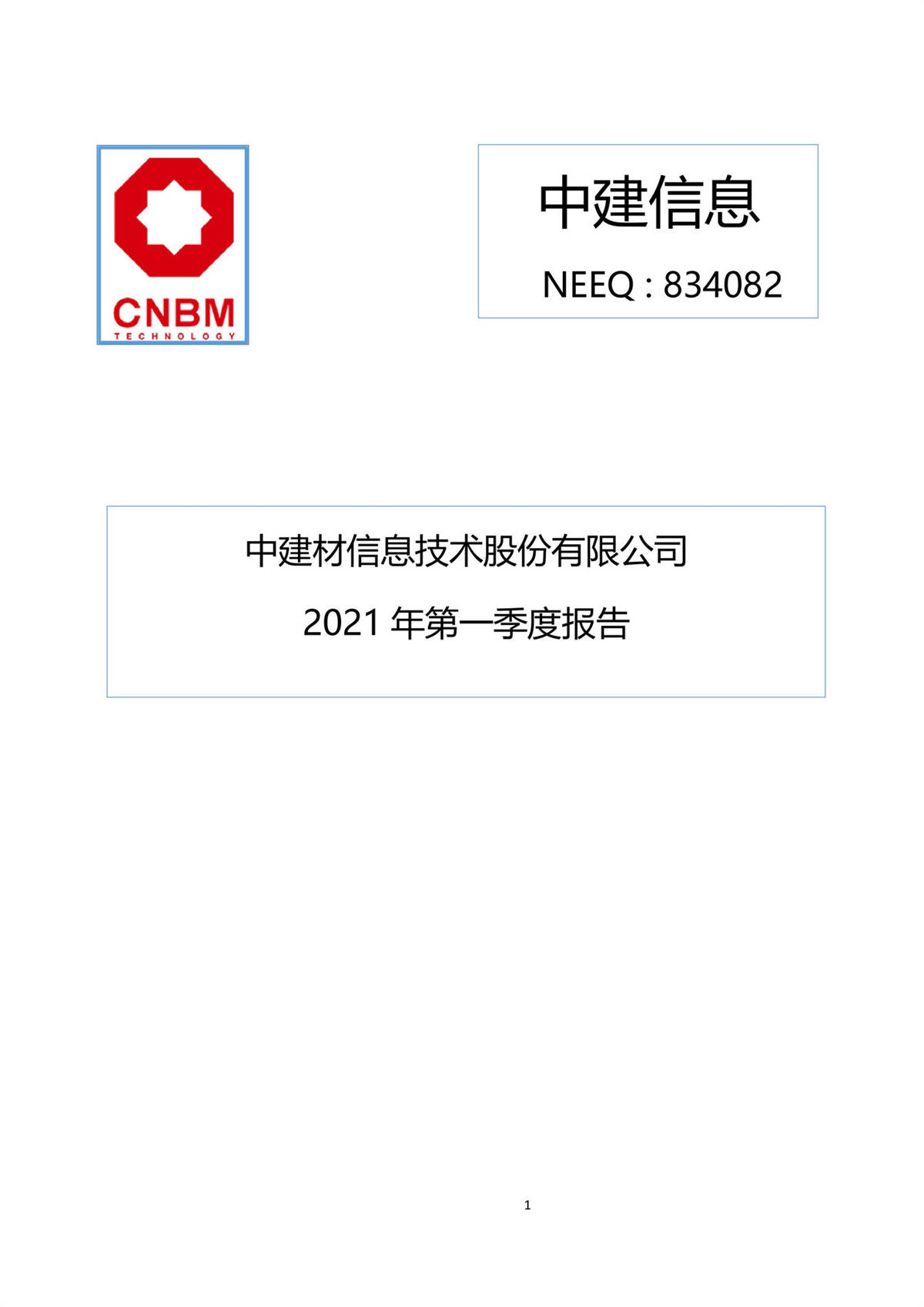 中建信息2021年第一季度報(bào)告