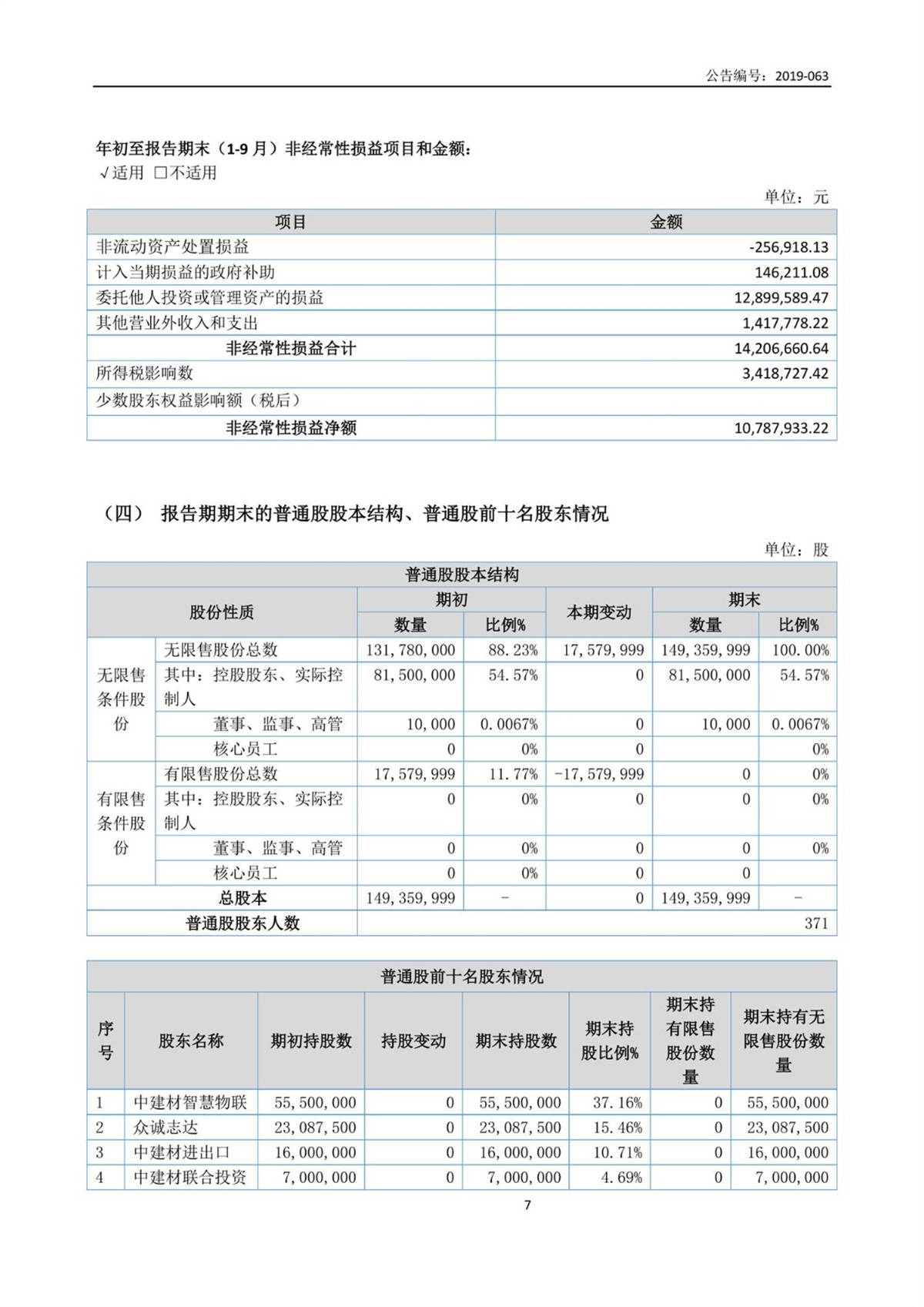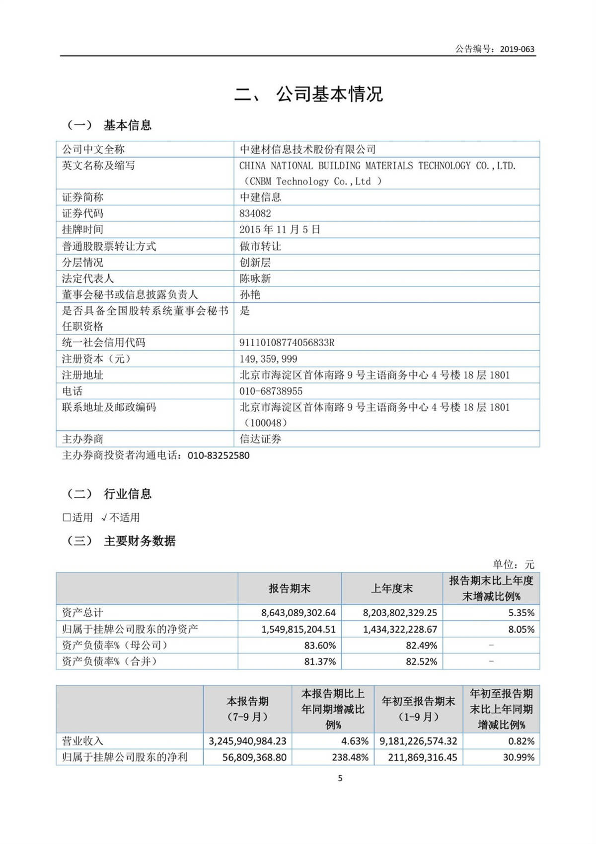 中建信息2019年第三季度報告