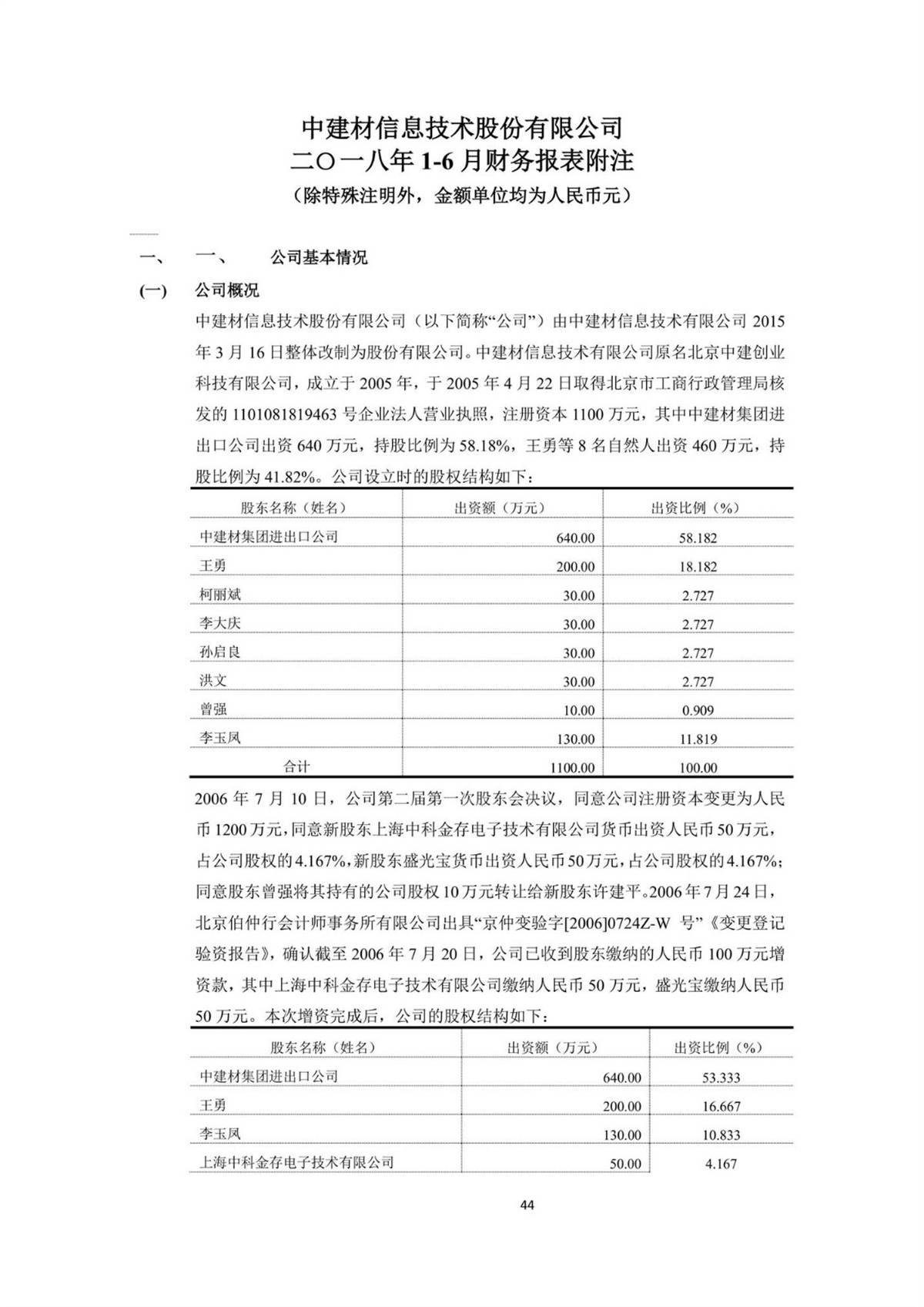 中建信息2018年半年度報告