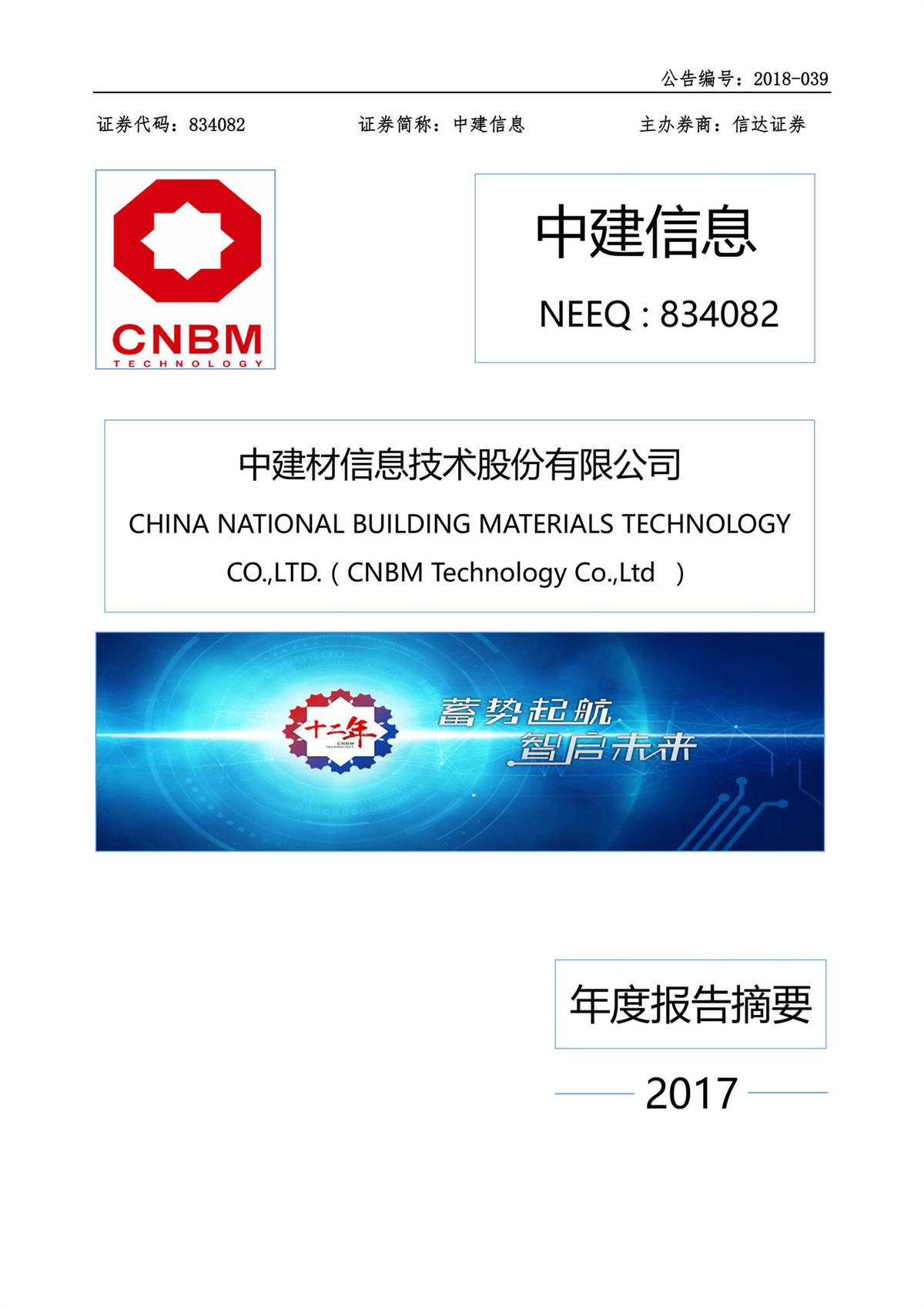中建信息2017年年度報告摘要