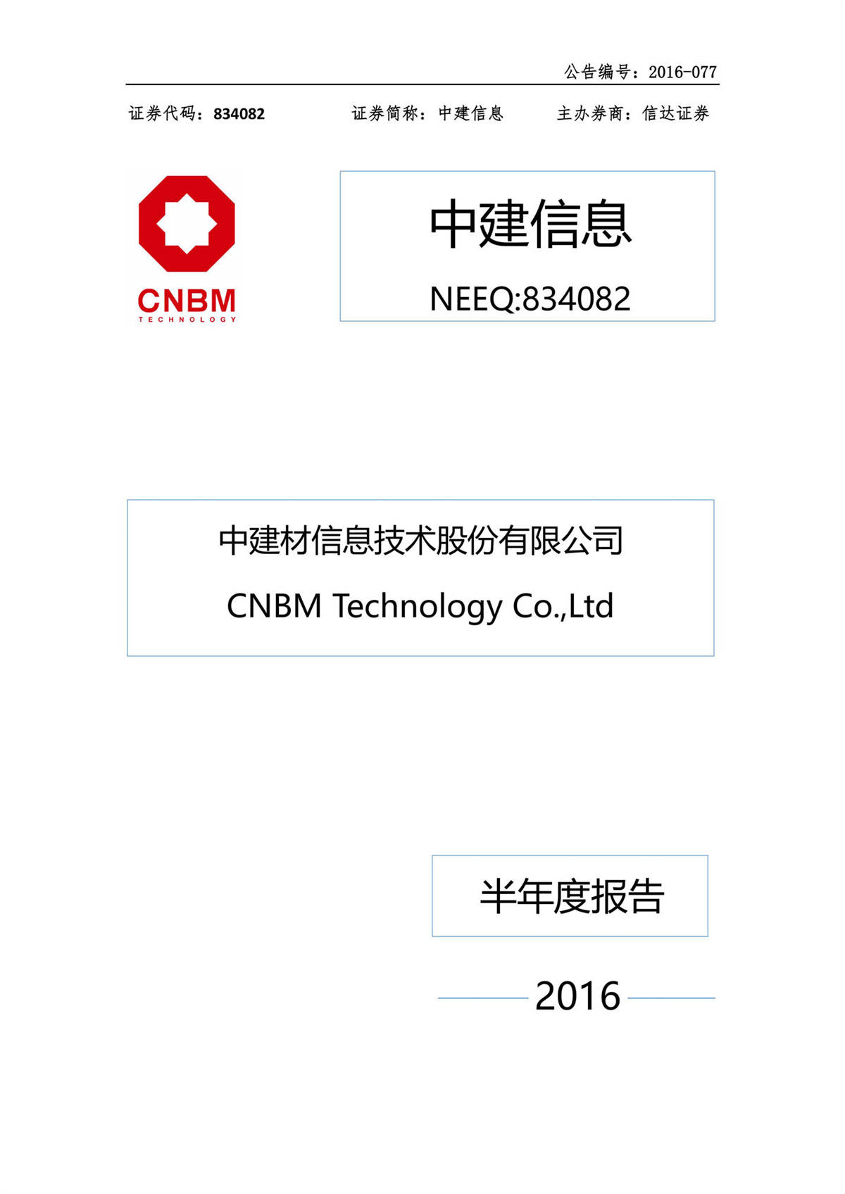 中建信息2016年半年度報告